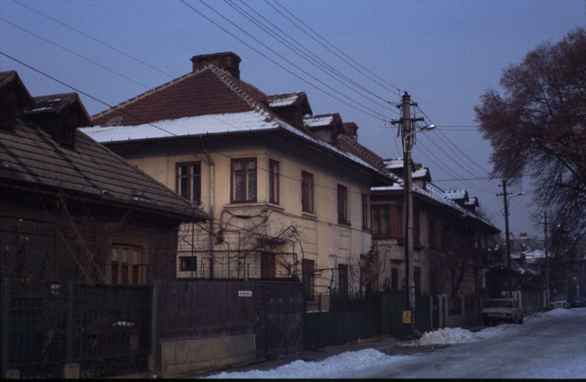 This type of urban housing was constructed in Romania in the 1930s as single-family housing for the middle class. Typical buildings described in this report are one- or two-story buildings with load-bearing masonry walls. These buildings called “vila” in Romania are characterized by a rectangular plan and are usually semidetached; they share a common wall with the adjacent building. A great variety of buildings exist of this structural type. The building type described in this report has load-bearing brick masonry walls constructed of mud mortar. The floor structure consists of timber planks and joists. These buildings are located in an area well-known to be earthquake-prone. The epicenter is located close to Vrancea and earthquakes exceeding magnitude 7.0 on the Richter scale recur every 30 to 35 years. The latest earthquake of this severity was the March 1977 Vrancea earthquake (M 7.2). However, the building type described in this report is located in the Bucharest area and although affected by the November 1940 Naruja (Vrancea) earthquake (M 7.4), it usually performed well during the 1940 and 1977 earthquakes. The most common type of damage was in the form of cracks and falling chimneys. Some of the older buildings of this type have been affected by other past earthquakes. Because this construction is common for many Romanian buildings of the “Brâncovenesc” architectural style, new retrofit techniques have been developed in recent years (in addition to the techniques used after the 1977 earthquake).
